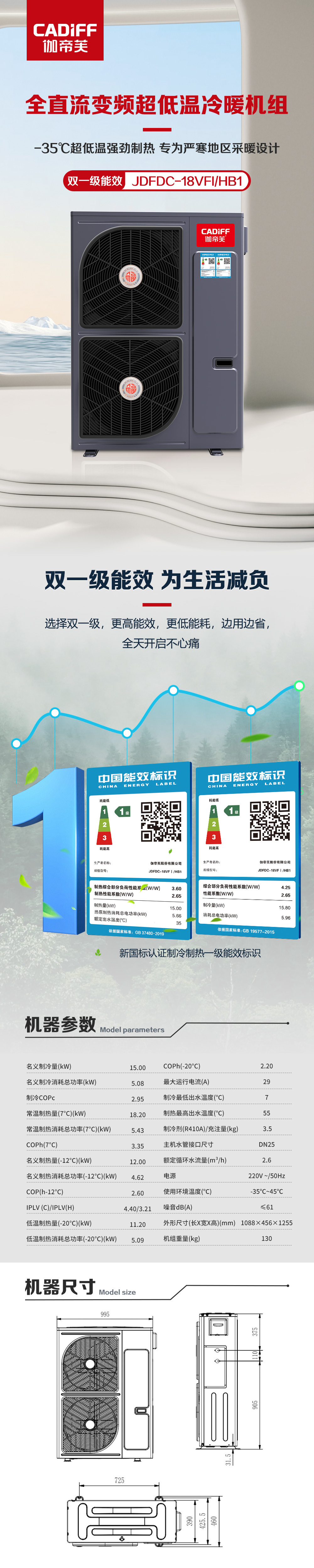 采用高效全直流变频喷气增烩(EVI)压缩机、均达到国家一级能效,以最低能耗适应南北方不同需求,真正为祖国节能减排事业做贡献。