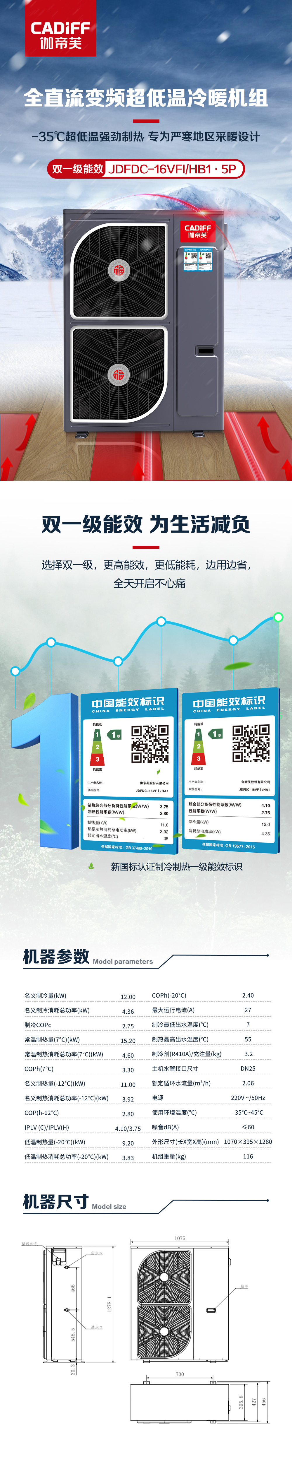 采用高效全直流变频喷气增烩(EVI)压缩机、均达到国家一级能效,以最低能耗适应南北方不同需求,真正为祖国节能减排事业做贡献。